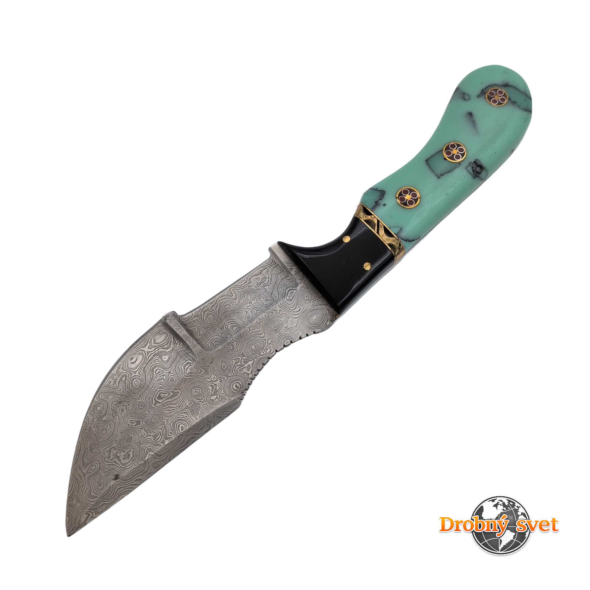 Tento jedinečný **ručný výrobok z Pakistanu** je skutočným majstrovským dielom. **Čepeľ z damaškovej ocele** je vykovaná z **približne 200 vrstiev** vysokouhlíkovej ocele (1095 a 15N20), čo jej dodáva jedinečný vzor a mimoriadnu pevnosť. **Rukoväť z umelej živice a mosadze** . Kožené púzdro v cene.
